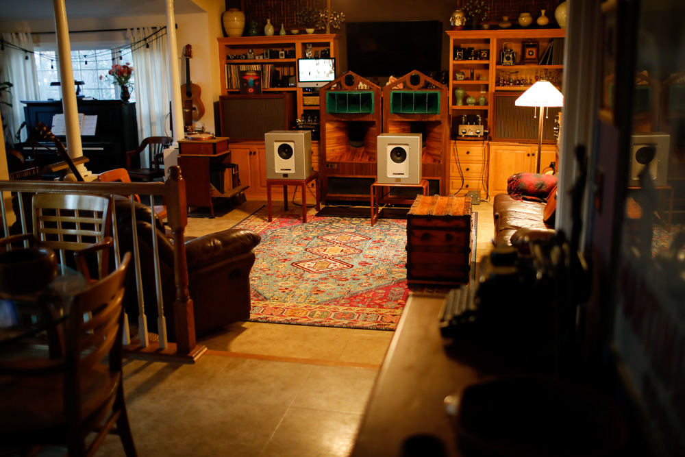 After several months of on and off use in my small room I finally brought the Hyondae Sound speakers upstairs to my larger space. Wow, what a difference. The factory cabinets felt limiting in my smaller room, but given a much larger space around them and positioned slightly out into the room, and powered by the McIntosh MC240, the Hyondae Sound Ti-755a sound magnificent. Pictured behind them are new-to-me ginormous Altec 802d/515b speakers. Surprisingly, the little Ti-755a definitely hold their own against the horns. Of course it’s a different sound with somewhat different qualities, but the silver speakers really do keep up from an enjoyability perspective. I have to admit I was a little taken aback by the difference between the small room and large room performance, and I kind of doubt that these are going back downstairs anytime soon. |