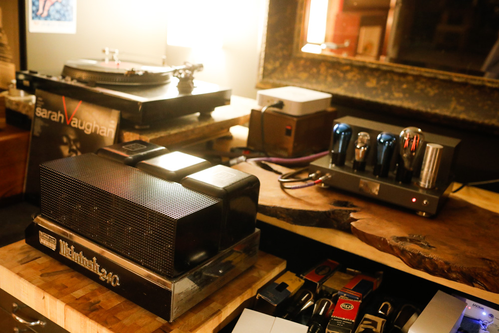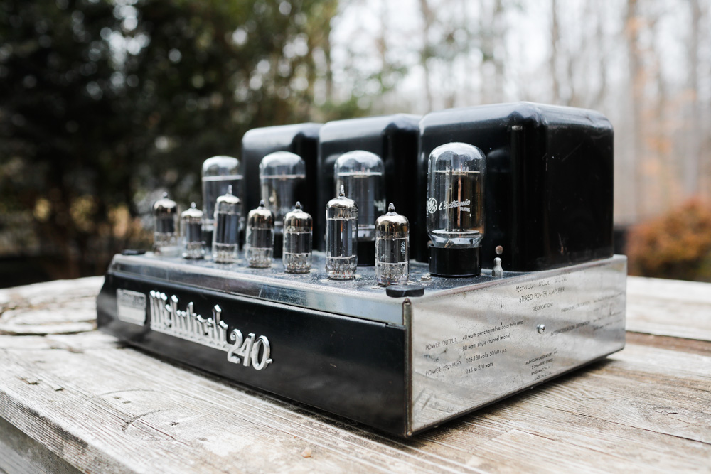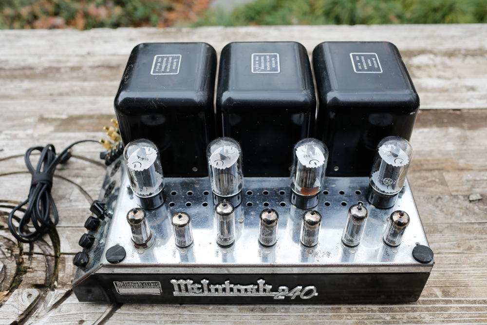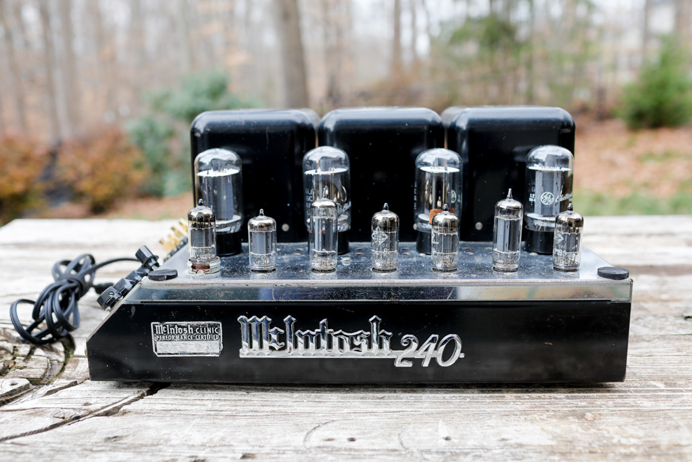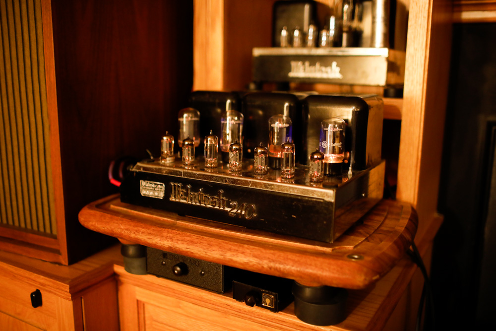 Here is the MC240 in my living room system, filling an 18x40 foot room with vivid audio from digital, LP and, as shown here, 78. I have it running with my Luminous Audio passive, fed by a simple Decware switchbox. Side note: I’ve used quite a variety of active preamps with my McIntosh amps over the years (although never an actual McIntosh pre), but definitely prefer the McIntosh gear with passive preamps. Somewhat surprisingly, I’ve found that the vintage McIntosh tube units really shine with a good passive preamp in place. Cranking the gain on the Mac to 100%, and using a passive preamp gives the McIntosh stuff room to breathe. They sound magnificently warm, but also insightful. I’ve had passive preamp success with all of my McIntosh collection; the 225, 30 monos, 240 and even the solid state 250. If you have one of these amps, give Luminous Audio a call and grab one of their entry level passives with a Caddock or Western Electric resistor and spend a long weekend (and then maybe a lifetime) hearing the most honest output you will ever get from your Mac. |