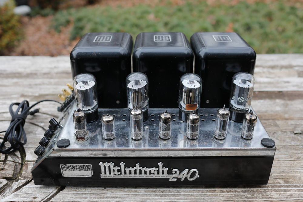 McIntosh MC240 At the time of this writing in 2024, there are more than 80 tube amplifiers featured here on my hifi website. In all of that, none are more iconic than the McIntosh MC240 shown below. The 240 is the very embodiment of classic hifi; it's a dream amplifier and has been since its first introduction in 1960. And in fact the unit below is from the first year of production, making it a somewhat unusual and slightly rarer example of this classic tube amplifier. Taking the push pull 6L6 model that McIntosh was using in their MC30 monoblocks, the 240 is kind of a 2-in-1 unit that dropped the MC30’s tube rectification and put both channels into one chassis. One of the first stereo amplifiers, the 240 is also easily bridgeable into mono, making 80 watts into one channel. Big, heavy and dense, the 240 is physically an imposing package, with all of the signature McIntosh gravitas on display in the classic simple but refined black and chrome aesthetic. In play, the 240 is powerful and rich but also light on its feet. Its renowned for being able to see deep into the recording, and for bringing out detail and space in a vibrant, realistic way. After months of listening to the 240 with a variety of sources and into several speakers, I would say that the 240 is a very pleasing amp to listen to and does in fact have some kind of depth and magic that adds to the output. The 240 has a naturalness to its sound that makes it very easy to quickly fall into, and like the 225 it gets timbre and tone really right. It's a very realistic sounding amplifier; live performances have a life to them if its in the recording, but unlike some, it also plays nicely with less well recorded program material. In direct comparison to other McIntosh gear of the era, I feel that the MC30 has more bass and oomph, it a denser, heavier hitter, and for some program material it really shines bright. The MC225 has a more relaxed sheen and a very beguiling sound that is perhaps ever so slightly “sweeter” across the board than the 240, but I found the 240 to push and control my Bozak B-305 speakers just a bit better in my big room. In the small room on high efficiency speakers, I did prefer the 225, but it’s very close. The MC250 had a bit more sparkle in it sound, but for me the 240 easily eclipsed its performance overall and it was clear enough to me that I preferred the tube amplifier over the early solid state amplifier. No amp is perfect. But the MC240 is close. If I had to go down to one single push pull amp, it would be the MC240 and I wouldn't look back. Single ended would be a much harder choice, but in a big room on less efficient speakers, I’m comfortable knowing that the 240 will serve me well for the rest of my life if I can be patient and settle down with it. There are lots of choices in vintage amplification, and lots of flavors to enjoy. I feel that the MC240 is certainly one of the best. Highly recommended for a one-amp-does-all solution. |
