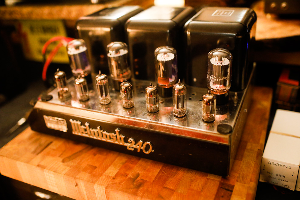 A David and Goliath pair up with the McIntosh MC240 and the Toshi Kurushima 71a. 40 watts of 6L6 push pull versus 0.75 watts of single ended 71a. |