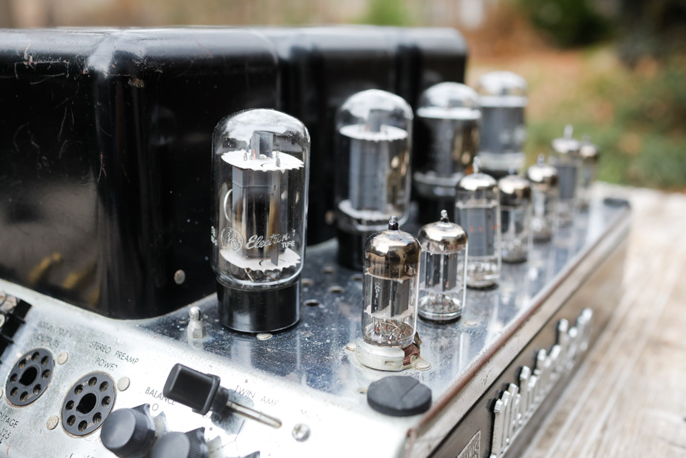 As you can see, my unit is in somewhat rougher cosmetic condition. It actually looks a lot better in person, the photos bring out every scrape and wart, but there is no doubt this one has been around the block a time or two. I actually purchased it from a seller in Japan, where I think it spent more than half its life. My unit was very meticulously refurbished underneath, and came with all vintage tubes of the highest quality. |