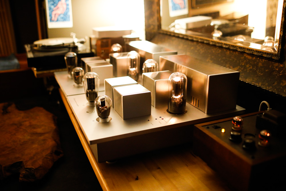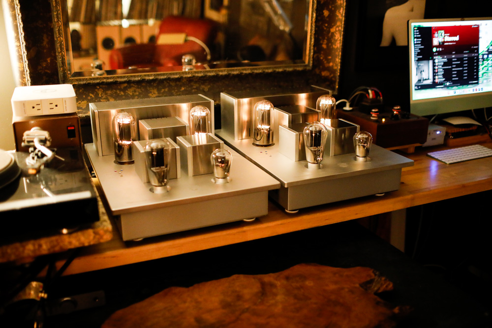 One thing you can’t miss with these amps is their room dominating presence. As mentioned, they are ginormous. And when running, the quad of 845 look like some madman’s candles burning the music right out of the speaker! Psvane seem to have spared no expense in their creation. Inch thick solid aluminum top plates with no visible screws. Transformer coupled and just massive everywhere. And with upgrades throughout by Mr. Thalman, an audio legend, I think these are close to a penultimate single ended 845 experience. |