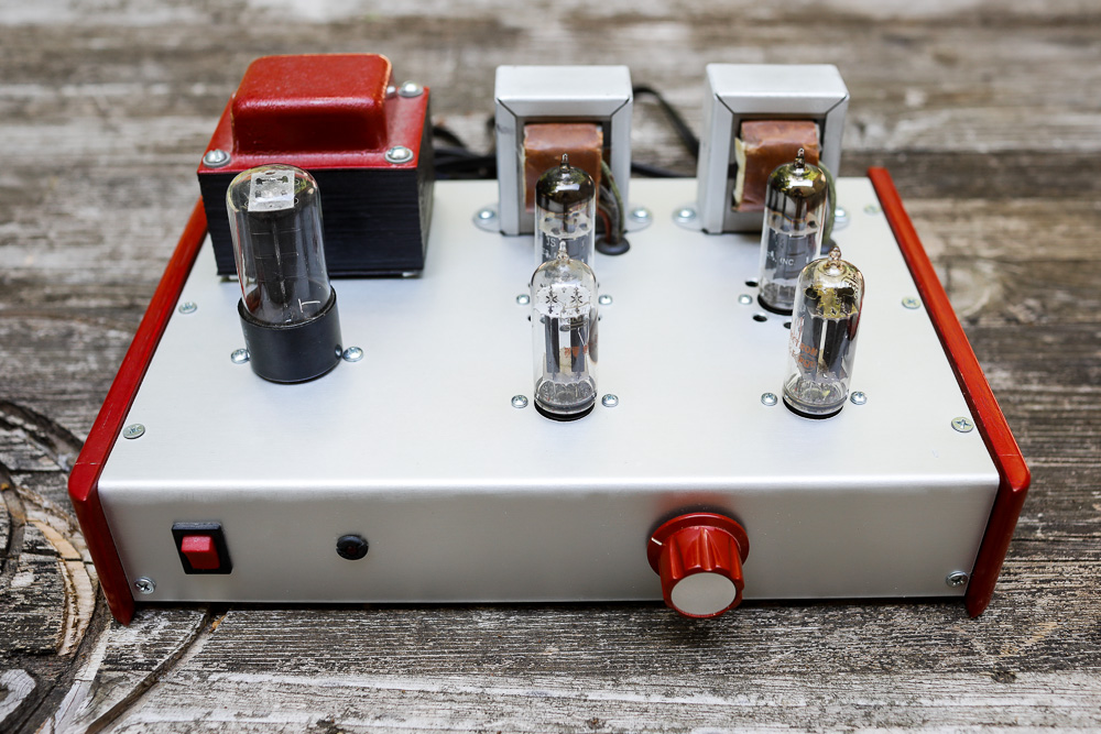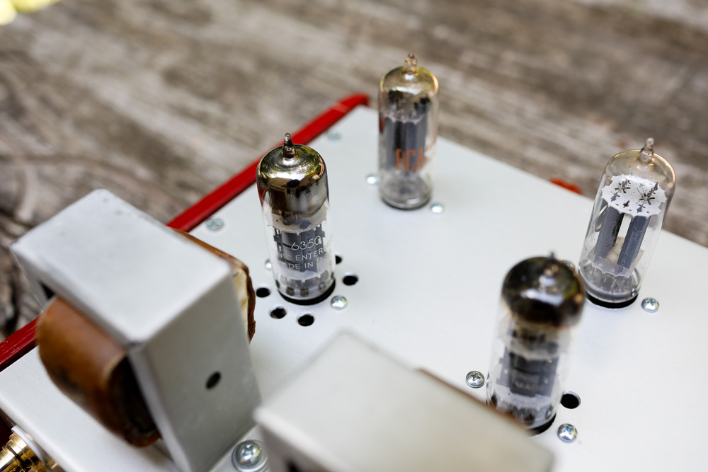 This build uses the 6FQ7/6CG7 triode as the driver tube. I’ve upgraded to RCA clear top versions that have proven to be non-microphonic and seem to sound great as clear tops usually do. |