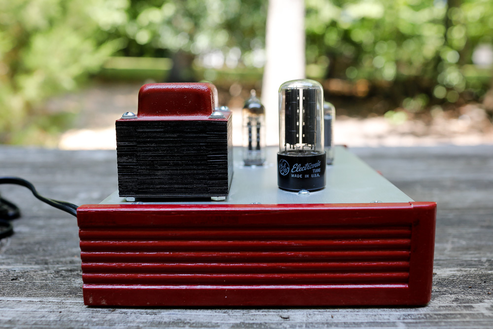 This amp uses a 5Y3 rectifier, so of course I had to try an 80 globe on an adapter. Sublime! |