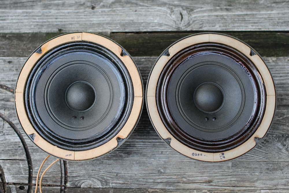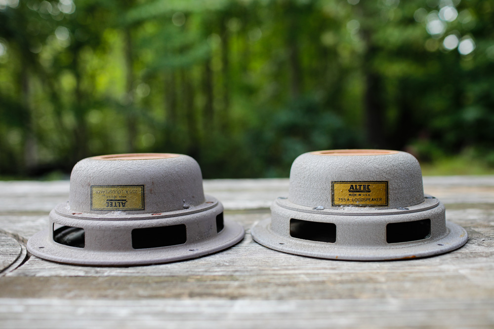 Side by side with the Jensen C-855. Closer than one might think, the Jensen puts on quite a show and is snappy in a similar way to the Altec. The Altec has more depth and a more realistic tonality, but the Jensen is 95% there. |