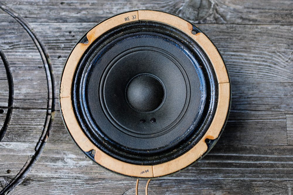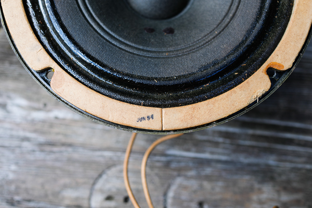 My 755a driver dates to June 1951, a very early speaker built just about right at the time when Western Electric turned over production of the 755a to the newly formed ALTEC. Altec assembled the drivers with the leftover Western Electric parts for a while, and this is one of those drivers; hence the two WE markings on the diaphragm, but an Altec label. Eventually when the old WE parts ran out, Altec began making their own replacements and the drivers changed, with different frames and new cones. All of this lineage is very important to the Western Electric / Altec collector, and much value is placed on the date of the build, with earlier being best. The texture of the frame, the quality control stamps on the gasket, the number of welds, and the labels are the markers that collectors look for. Original cones are a must, not an option, as the secret ingredients in the original cone material are purported to have a very large impact on the sound of the driver, with the older drier cones being highly valued. Joe Roberts, quoted in the intro, has a good breakdown of the 755a lineage at his site Junkyard Jukebox. This is a great resource for the 755a with cabinet designs and detailed insights about these drivers from someone who has heard and handled so many over the years. |