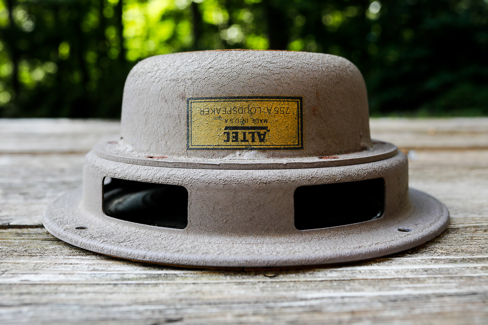 Altec 755a "Last week we were playing around in the middle of the vast Silbatone collection of Western Electric equipment. Mr. Mukai and Mr. Yuzo Doi flew in from Japan to visit. These guys are the top WE experts in Japan, both work with vintage dealer/manufacturer/repair shop Western Sound, Inc. and Doi-san is resident WE expert at Stereo Sound Tube Kingdom magazine. All the well-known rare and exotic WECo treasures surrounded us, along with many items that qualify as super-rare or even unique. Prototype Fletcher coaxes with 555s and Jensen 18s, 595As, a couple pairs of 757As, 753s, 750s, L-8 and L-9, every Western horn...plenty to interest any WE maniac." "The first day we heard the mega-rare 12A/13A system. And what did we work on the second day?...WE 755As. Western Sound Inc has handled a few thousand 755As. Everybody in the room used 755As for at least 25 years. We all have a lot of experience with bigger and more elaborate WE speakers than the 755A but none of us ever got tired of 755As because they are like an element of nature. Nobody tires of the sky." -- Joe Roberts at Junkyard Jukebox. In the world of full range drivers, there is no speaker more revered than the Western Electric / Altec 755a. Without doubt; for the full range, wide-band driver enthusiast, these are the very definition of iconic and are THE holy grail. Everyone has heard of them, but being the elusive White Whale, very few have actually heard the 755a, especially in their room and with their own signal and amplification. With prices and demand climbing, finally owning one of the earliest and most desirable of the 755a drivers is such a long-realized pleasure for me, and really is a landmark moment in my audio journey so far. And cutting to the chase, because this one is probably going to get a little long-winded, this is absolutely one of the very “best” sounding 8 inch drivers I have owned so far. Sometimes the legends are indeed Legendary. But, Dear Reader, I regret to report that I only have one single driver, which means that all of my listening and my impressions below are based on a one-driver presentation. Not stereo. Which is a severe limitation, and has given me pause in creating this review. On the other hand, this is a speaker made for the mono world. In 1951, when the 755a shown below was new, mono was all that there was. Back then everyone had just one speaker. Stereo was a decade in the future. But as a stereo native, the drop in scale from two speakers to one is a challenging situation and would take some adjustment. I’m comfortable enough with a mono signal, and in some cases prefer it. I love 78s, they are all mono, and actually are some of the most emotionally engaging program material I have ever encountered. But signal aside, mono these days is normally played on two speakers, our ears and brains expect to hear two speakers, so the drop in the scale of the sound between one speaker and two is significant and troublesome from a review standpoint. Especially concerning something with the reach and magnitude of the White Whale. Nevertheless, like some kind of audio monk I took up the challenge and went on a 6-week mono fast, eschewing stereo and embarking on a total immersion in the single driver mono sound. Having only a single 755a to evaluate, I needed to level the playing field as much as possible to get any valuable impressions. So I spent some time experimenting with placement, cabinets, and sources; really just running in the Altec for the first few weeks, seeing what it did, and letting it loosen up after decades of rest. And letting my ears adjust to the huge differences in a single speaker presentation. But after all of that, I put this driver up against everything I had on hand, going back and forth and spending some quality time with a big mix of drivers as single speaker mono sources. It was an enlightening experience, and I found that once my ears, perception and (perhaps most importantly) expectation had adjusted to such a directional sound source, there are some advantages to a single mono source. Regardless of loss of space and soundstage, and the artificiality that is the stereo effect (which I do love), the tone and actual content seems to come across a little stronger and more directly through a single mono source than it does in stereo. One thing that is apparent from my experiment is that not all drivers are created equal when it comes to playing a mono signal on their own. In this regard, the 755a dominated the field, with its only close competitors in my stable being Coral and Zenith. Some that I expected to sound amazing on their own fell short; sounding not just small, but somehow empty. I have to wonder if a single speaker presentation is really one of the hardest tests there is for a wide band driver. After all of my back and forth it seems like a gauntlet that few make it through unscathed. Now that I’m a mono fan club inductee, this will be something that I spend some time with on new speakers coming through the door. Getting back to the Altec 755a, my own pilgrimage began long ago. I lived in South Korea teaching English for a number of years in the late 1990s, and back then a pretty serious hifi market existed on one of the upper floors at the TechnoMart tower near Chamshill. I went there more than a few times to gawk at the audio gear, it was the first place I ever saw a hifi tube amplifier, and it was also here that I first heard a 755a system. I didn't have any idea what that meant when I heard it, but I wrote it down in the little notebook that I carried around in the pre-digital world, and looking back it was a rare treat and the gentleman at the shop was such a delightful character who turned me on to Bossa Nova. A few years later I encountered these drivers again at the original JE Labs website, an incredible resource that helped to guide me near the very beginning of my journey into the audio dark side of tubes, micro amplification and single driv