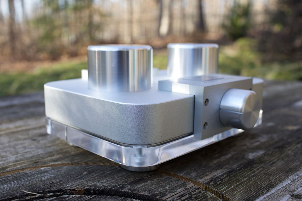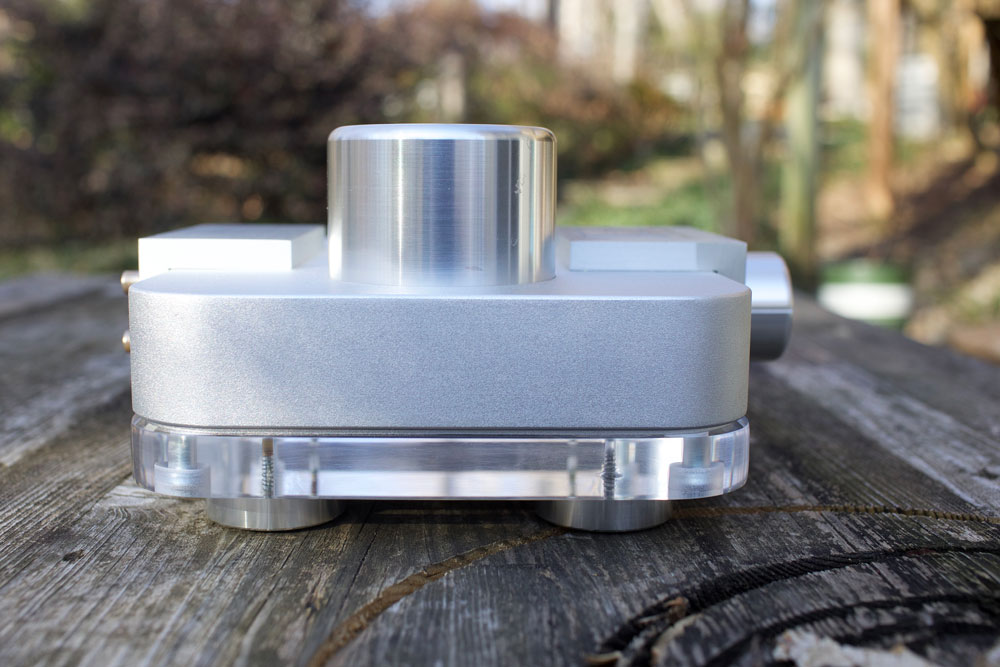 Audio Music Transformer Volume Control The Audio Music Transformer Volume Control (TVC) is one of the beefiest and most supremely well constructed pieces of audio gear I’ve ever seen. This thing is an absolute beast! Designed by James Zhang (of Stereo Knight) this TVC uses super high quality proprietary transformers together with a Swiss-made Elma 24 step pot to deliver stunningly transparent and open sound. Nearly 15 pounds of transformers mounted to a 1.5 inch solid aluminum billet, the previous owner added the plexi base and feet, and I think the whole package is quite impressive looking. So how does it sound? Should a passive volume control even have a sound? In this case we are going for pure transparency and the Audio Music seems to deliver. Although I do prefer amplifiers with a built in volume control, this little wonder is now my first choice to interface with any amp that doesn't have one. Back to back with the Luminous Audio Walker, the signal through the Audio Music TVC is more spacious and more “free” feeling. Both are great, and are easy to listen to for long periods, but the TVC simply seems to show a bit more of everything in the program material (both good and bad). This model seems to be a first generation product, and Audio Music now offers even more in their newest models. Well worth a look if you are in the market for an invisible sounding stand-alone volume control. |