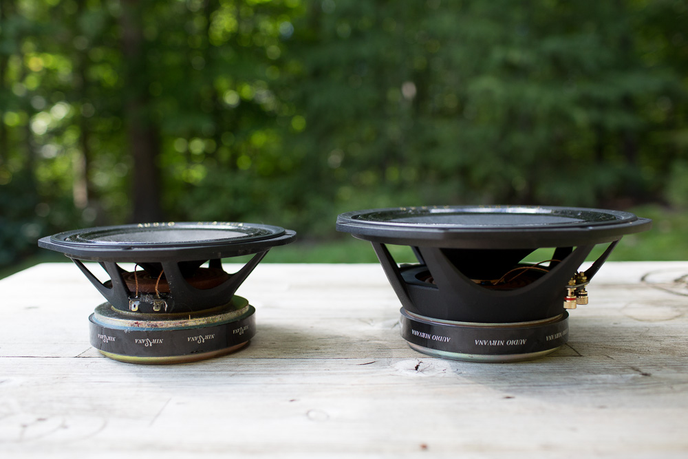 Audio Nirvana full range drivers Audio Nirvana makes a number of very interesting full range speaker drivers, and I've played around with more of their drivers than any other manufacturer. I like Audio Nirvana very much; they are supremely well made speaker drivers, very efficient and with a lot of choices in magnet and cone variations, and are quite affordable for the level of quality they offer. As of this writing, I've owned the 15 ferrite, the 15 alnico (both from the “Super series”), the Super 8 and the 10 Classic. They are all great drivers, with different applications. The 15 inch Audio Nirvana drivers really are the only one of their kind out there, and I think we should all be grateful that someone is even making a full range driver like the AN 15, so thank you David Dicks! 15 inches of efficient full range means BIG sound in an OB panel. I never put my drivers in a ported box while I owned them, but I wish I had done so. I'd be willing to bet that a huge ported cabinet and the 15 inch AN driver would be a powerful force! Having owned the ferrite and alnico versions of this driver, I can say that they do sound different, but the difference was slight in my application. The ferrite driver sounded slightly more open for me, while the alnico produced a bit more bass. Think Häagen-Dazs vanilla versus Ben and Jerry’s vanilla. I found the ferrite version to be noticeably more efficient though, making it a better match overall for my flea power amplification. With the large difference in price between the magnets, if I were to buy another pair it would be the ferrite magnet. Although these days there is another model to consider, the “Classic” line which loses the whizzer cone. I’d be very interested in the 15 inch version of that driver, as the whizzer cone really is something that is hard to live with in the long run. No matter how you look at it though, these drivers are a great buy and perform superbly. The 15 inch models are wonderfully imposing drivers that can reveal all of the program material with such cohesion and punch that it is really something. Neither of the 15 inch drivers are really suitable to OB panels, but that is how I used them none-the-less. As expected, the bass was not powerful, but it is adequate for music. Adding in helper woofers solved the bass issue but never sounded natural to me, and I preferred the big drivers all on their own. The ported cabinet probably gives the driver the support it needs to really shine. It's a Ferrari, and putting it in the OB panels is sort of like making that Ferrari drive 55. Going down the model ladder I have long-term experience with both the Super 8 and the Classic 10. I placed the Super 8 in a ported box of similar dimension to David Dick’s “Monitor” cabinet and used them as bookshelf speakers in my living room system for about a year. They were updated a year or so ago with the Classic 10, placed in the same ported box, and they are a clear step up in fidelity in pretty much every way. The Classic 10 is a very good sounding speaker both in my ported boxes and in the open backed Telefunken cabinets, and I think it will be a long-term solution for me in my living room space. Many people not otherwise interested in audio who hear them have commented on the clarity and tone. Having owned Lowther, Fostex, Coral, etc. I can say without reservation that Audio Nirvana is as good as any of them, and are a clear winner for me over Lowther and Fostex. Coral has some magic that is hard to quantify, but Coral is long gone and we are left to find those hidden gems only on the used market. Audio Nirvana’s speaker drivers are built to a very high standard, many choices are available, they are affordable and sound great. In the full range driver market, they are a clear winner. Highly recommended. |