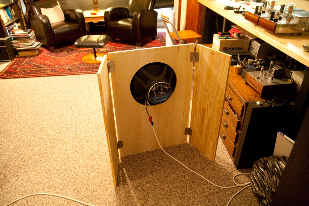 The Super 8 in a ported box made from old Kenwood cabinets found at Goodwill, in dimensions similar to David Dick's "Monitor" plans. This cabinet now holds the Classic 10 driver. |