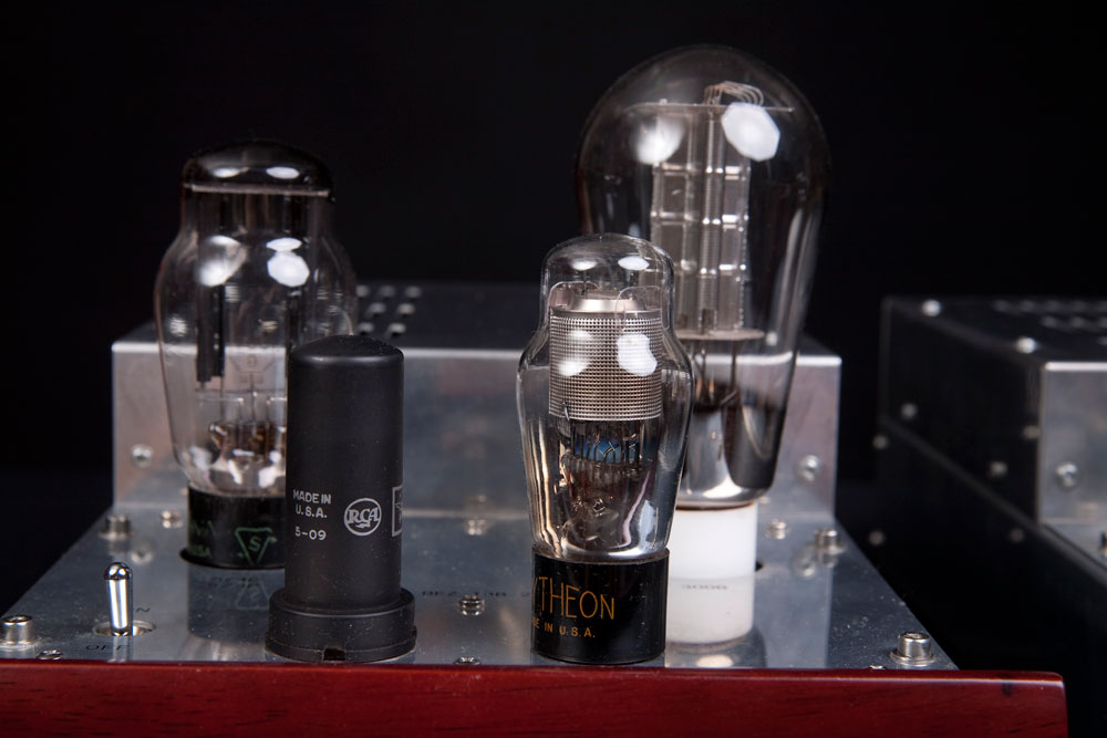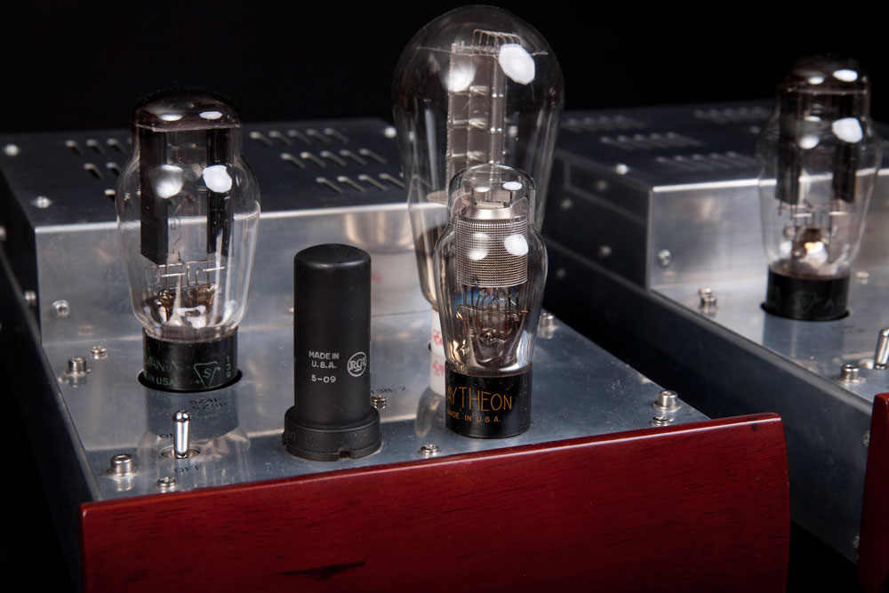 Drivers are NOS RCA 6AG7 and NOS Raytheon mesh plate 6C5. This amp is particularly sensitive to rectifier tubes. I have finally settled on old stock Sylvania ST 5U4G. |