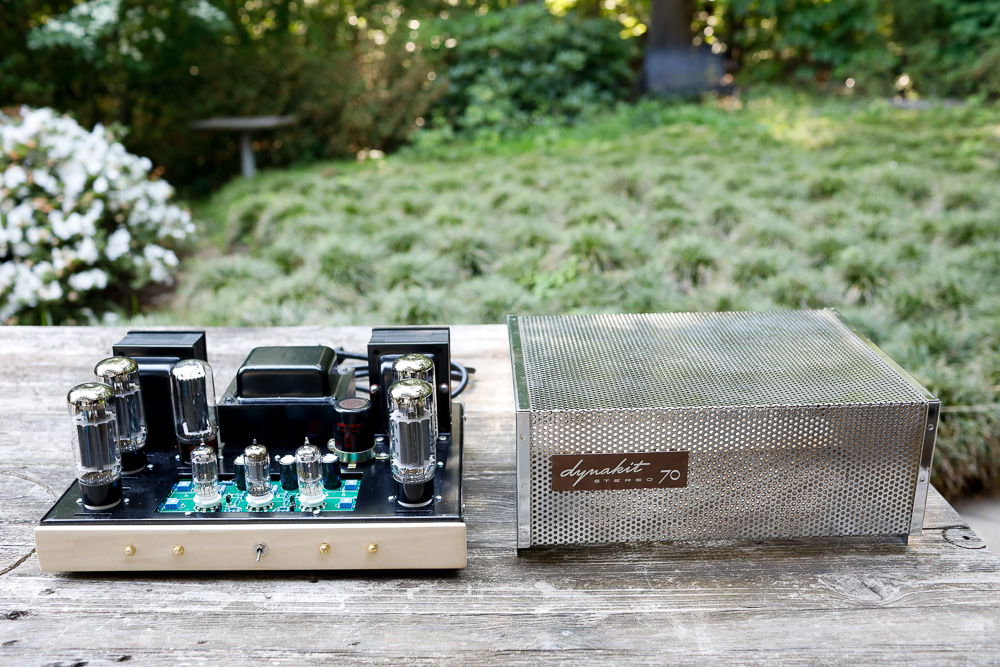 Chris Keller Dynaco ST-70 The Dynaco ST-70 is the quintessential tube amplifier. In many ways it is the very definition of the tube amp, and if one were to see a photo in Webster’s it would make sense that this was the one. By some counts there are 350,000 or more of these amps out there, making this the largest production tube amplifier of all time. A new design when Eisenhower was President (1959), this is a long proven platform and a sound signature that a wide array of people can identify with. In some ways it's the baseline. I’ve been eyeing ST-70 amps for a long time, but its been on the back burner, as I figured that in reality I just don't have a setup that wants or needs 35 watts of power. Well, as it turns out those misgivings were ill placed; the ST-70 runs an efficient single driver to its limits and it sounds great! Backing up a bit, this is a Chris Keller rebuilt ST-70 using the VTA driver board with 3 12AU7 tubes, so a departure from the original design. This one has the good transformers and has been rebuilt from the ground up. The result is a super solid amplifier that performs flawlessly, and with such a great wide and richly engaging sound signature. Man, that big voice is there with the rich undertones that the vintage stuff does so well, but this one has a modern sound on top of all of that strata. This ST-70 is a modern sounding amp, and it kicks ass. It images, it has power in reserve and it sounds like a tube amp should, quietly calm and relaxed, but ready to pounce at will. I will say this, the ST-70 is an engaging, well rounded sound that is full where it should be and slippery light on its feet where the program material requires that. It's a remarkably good sounding amplifier, and is certainly the height of the “Vintage” sound signature for me so far. The Dyankit 70 betters the Scott and Sherwood amps I’ve owned in pure fidelity at least. If I walked into a room where this was playing under a curtain and out of sight I might think this is a single ended 2A3 amplifier. And that’s one of the really surprising, and frankly quite enlightening things about owning this ST-70; the power doesn't over-power the playback. It is solid, but nimble as hell. The ST-70 is a classic, and like the 300B and 45, in my opinion it should be on every tube audiophile’s list to experience at some point. Highly recommended if you can find a properly updated unit. |