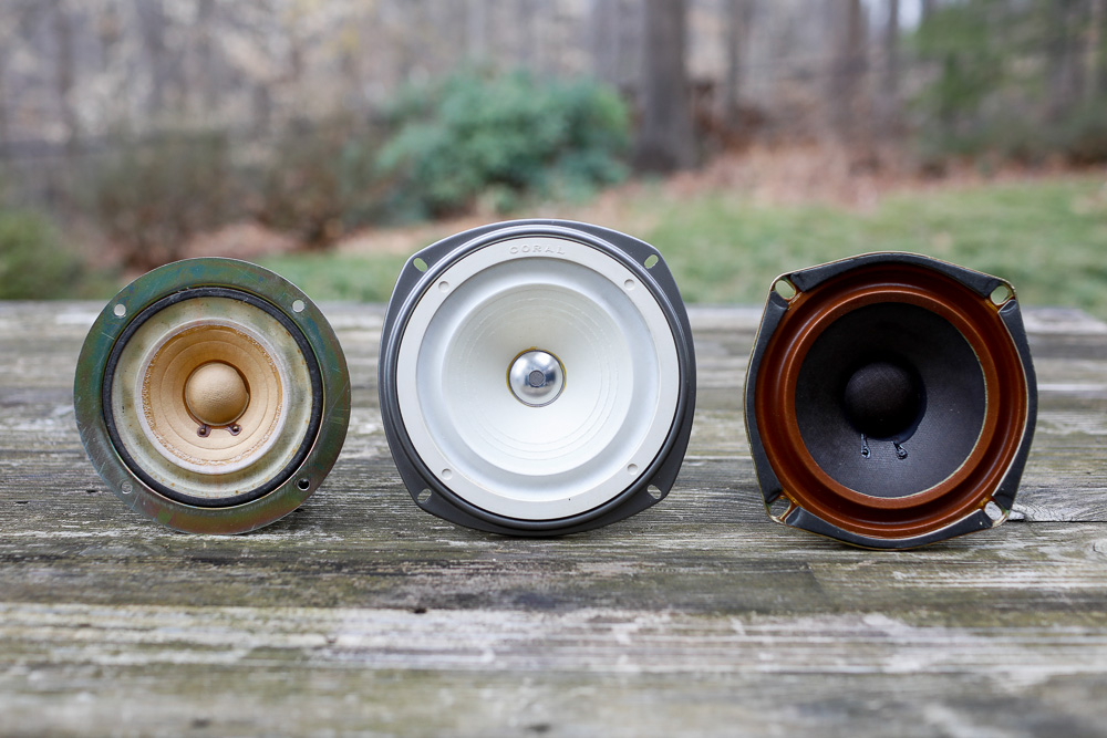 Coral 12RG06 full range drivers Here we have an interesting and quite rare little driver, I think made by Coral, but hopefully someone in the know can clarify. This is the 12RG06, a 5 inch full range driver that came loaded into the largest of the Tunnel Reflex cabinets made by the Admiral brand of speakers, probably in the late 1960’s or early 1970’s. This little speaker is quite good, with a rich and forward presentation that sounds extremely good in my Telefunken open backed cabinets. In the Tunnel Reflex boxes, these were paired with a small tweeter, but to my middle aged ears this doesn't need the top end support. This speaker sounds pretty much full range, extending lower than most full range drivers, regardless of size and having a vibrant and live sounding top end. No whizzer cone to screw things up! This one is well made in an industrial sort of way, and with a (quite powerful!) magnet unlike any I’ve seen before. The surround is heavy duty and has withstood the test of time still being pliant and supple. In short, this is a great little driver and if you run across one its well worth investing some time in a proper reflex cabinet or on a large open baffle. This compares very well with the Holey Baskets and the Flat 5. Recommended if you can find a pair. |
