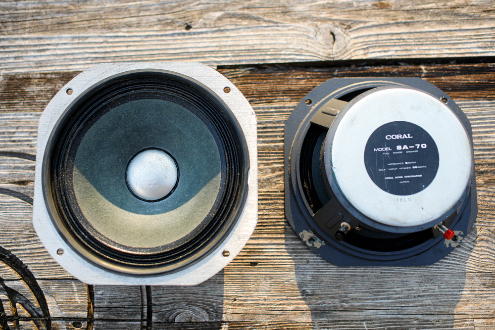 Coral 8A-70 Full Range Drivers The Coral 8A-70 are masterpieces of the single cone full range driver artform. These are rare drivers, and I don’t know if there were few made, or if they came very late in Coral’s lineup, or both, but for whatever reason I don’t see these come up for sale very often and there is very little anecdotal information online. I haven’t been able to find any information about what product these drivers would have been included in, but whatever they were mounted in must have been an extraordinary speaker! These are fairly massive drivers, heavy at 7.5 pounds each, and just dense everywhere. The 8A-70 feature large ceramic magnets and somewhat thick cones that are apparently made out of a proprietary corn pulp fiber. A whizzer-less design, Coral instead used a metal center tab for treble extension. The Coral 8A-70 simply do everything well. They are full range speakers, and not what I sometimes refer to as “wide band”. These heavy duty, overbuilt beauties bring the full flavor to the table and do not disappoint in any way. They sound nicely smooth and play very low in the bass range while still having enough sparkle on top to be satisfying. They are relatively efficient, maybe 96 db/wm or so in practice, which means they can play well with everything except for the smallest of the flea watt amps, but still gobble up higher power. They play clean FAR louder than I could ever sit through. And they sound awesome. The only caveat for me on the 8A-70 is that I don’t find them to be quite as emotionally engaging as some of the other choices on hand over the past few years, such as Oleg Rullit’s Aero 8, the Altec 755a, or the little Holey Baskets. And coaxials like as the Isophon PH2132 or Coral’s own 8TX-70 bring the emotion, but also a more present treble which conveys a sense of space that is a little beyond the 8A-70 on their own. The Isophon make people cry. That property is less present with the 8A-70. And in fairness, that emotional property is actually pretty rare. I’ve had the 8A-70 for three or more years now, and it’s taken me quite some time to get my thoughts together on this one. I’ve enjoyed them, and after so many hours of back and forth I find that they are almost as good as the very best, and are a great “all-round” choice for a vintage full range speaker. They do it all, and with grace. These are not common, but do come around now and then. Happy hunting. |