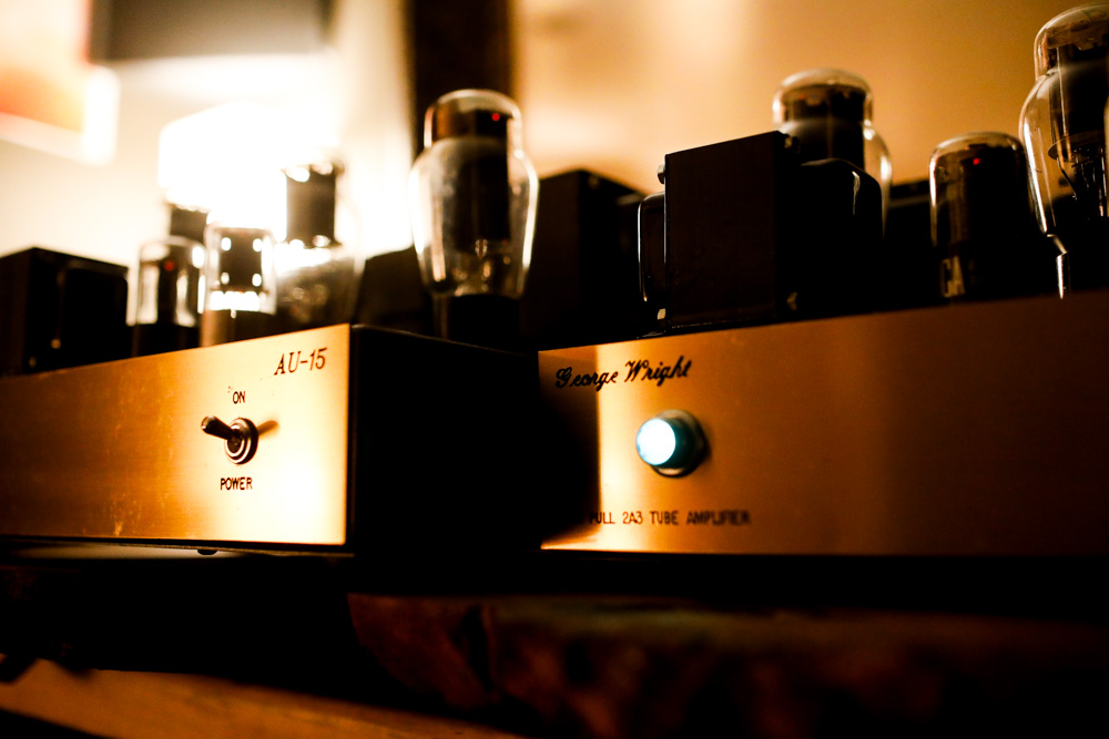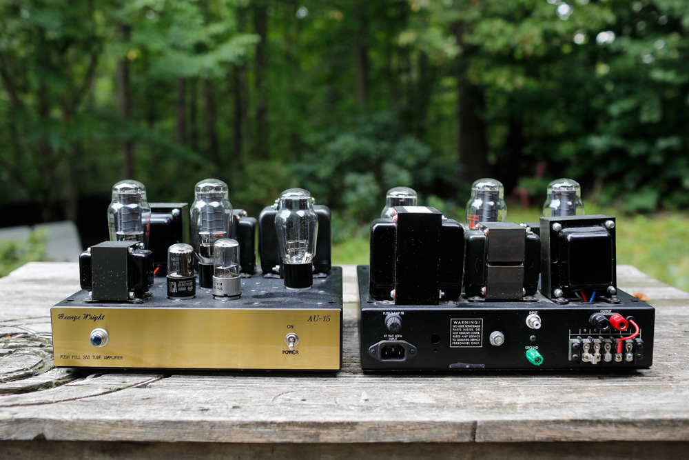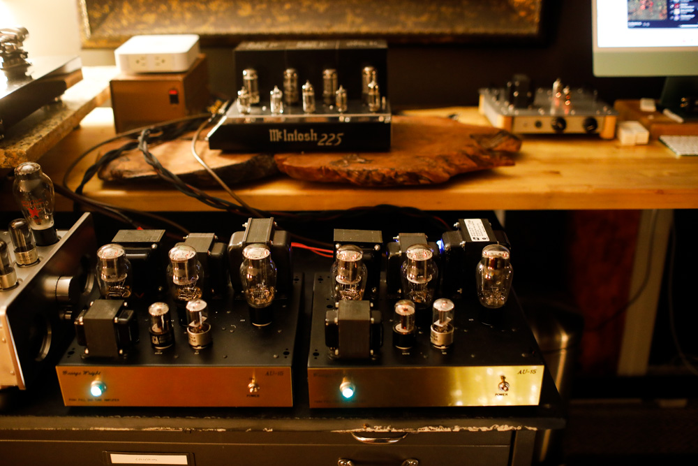 Back to back with the McIntosh 225 is a tough call. The Wright amps have a glow that the Mac doesn't, but the Mac has more “umph” and grip than the triode monoblocks do, and it makes for a slightly more athletic sound. These are two of the best push pull tube amps of all time, what a treat to A and B these beauties. Driven here by a Don Garber preamp. |