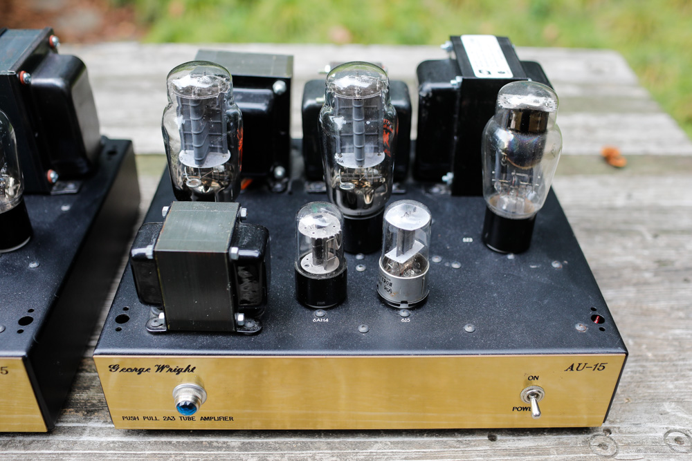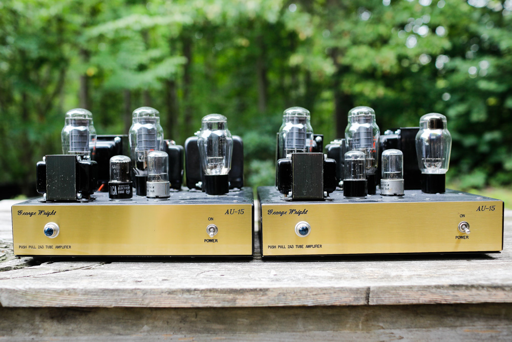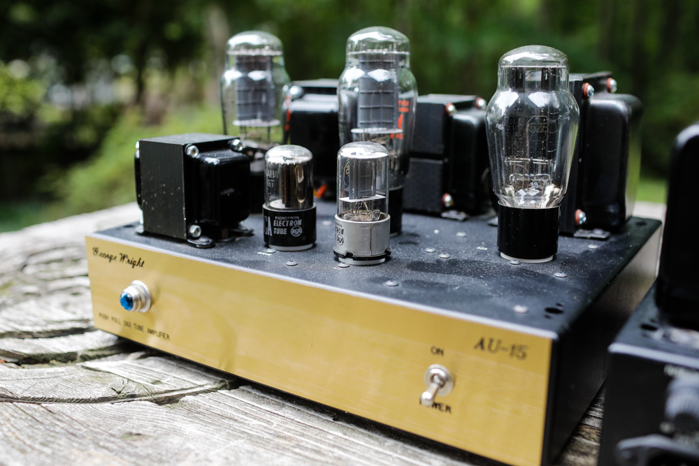 George Wright AU-15 Signature Push Pull 2A3 “One area I am very picky on is power amplifiers, even though I am known for the phono preamps I build. And while I build different types of both single ended, push pull and even OTL headphone amplifiers, my favorite type is always pure triode designs. This goes back to working with Don (Wickersham), going out to the churches to work on these older electronic organs such as the Wurlitzer and Hammond products, both with amplified mechanical tone generators, and listening to those great push pull parallel 2A3 power amplifiers producing the lowest registers of the foot pedals, and how good those old systems worked. Many of these still had the original 2A3’s in them, and at that time, some 30 years later, they still sounded great. That is why I built the AU-15 transformer coupled 2A3 push pull 15-watt power amplifier. Now the AU-15 is a great product, I took a pair of these to one of my California dealers to try out, and at first they didn’t want to hear another tube amp as they had a lot on their floor. After a while they decided to hear them, and they tried to put them to shame, they hooked them to a pair of large Magapans and turned them on. The wife was sitting in her office, walked out and said, “We will take them.” And then she sat down and listened for a long while. The wife is the organist at her church and the husband is also a concert pianist. I myself could not believe how well they worked with those power hungry speakers, but they handled them very well. It is funny that they had the Maggie’s hooked up to some 100 watt SET tube amplifier to show off the system and the 15’s sounded much better.” – George Wright George Wright is one of the legendary names in tube hifi that I have missed so far in my endeavors. He and I exchanged a few emails back in the early days of my tube amp enthusiasm, and he was patient and friendly in his explanations to a complete newbie. I never did buy one of his amps though; the timing was never quite right, the stars not aligned, whatever. After George died in 2009, his amps fell off the radar for me a bit and for some reason Wright Sound gear just never made it into my listening room until a year or so ago when I picked up these amazing 2A3 push pull monoblocks. I’ve had a few push pull 2A3 in the past and this is a sound that I quite enjoy; detailed and warm but also driven and alive. Push pull 2A3 is a nearly perfect sound in my opinion, and with 15 or so watts per channel (hence the AU-15 label) it's a topology that works with most any speaker and system out there. Overall, I’ve found that it's a great way to have pure triode goodness in a package that meets the needs of most users and most musical choices. Well regarded as a circuit designer, George Wright made no-nonsense amps in the 1990’s and early 2000s that have a reputation for sounding amazing. His phono preamps in particular have a lot of anecdotal web presence, as well as his almost iconic single ended 2A3 monoblocks. The Signature line of power amps like the one featured here, all with gold faceplates, seems to be an upscale offering from George, and I have no idea how many might actually be out there. One thing is clear, George Wright had a gift for circuit design and his amps have a long-standing reputation for excellent fidelity. The Wright Sound AU-15 shown below are part of George Wright’s “Signature” line and I suspect they represent the best of what George was doing. I think this particular design was really from the heart, and the sound of this amplifier is indeed something special. This is an amp that presents nicely warm and saturated but it is still quite nimble and clean, a combination that makes voices jump out of the speaker while laying down a low bass floor for all of it float over. These amps image better than most single ended amps do, and there is something so “right” about the timbre; something like brushed drums sounds so hauntingly real and in real space, and the feeling of open space in general is very strong from these amps. As the only George Wright gear I’ve owned to date, I have to say that the sound is impressive and immersive. To make the obvious pun (again), they do sound so “right”. The build itself is simple in a functional and clean Model T kind of way, and the features exceed most other offerings out there with 4, 8, and 16 ohm taps easily configurable on the fly. A ground lead is a feature you don't see often. All of the connectors are of adequate quality and nothing on these monoblocks feels flimsy or underbuilt, quite the opposite. George Wright amps don't come up for sale very often, and then suddenly it seems like there is a burst of them on the market, followed by another long dry spell. Obviously there are a limited number of these amps out there now, and they are difficult to find, but I can say that I whole-heartedly recommend picking up any of the George Wright gear that you run across. Hear what it does that perhaps others don't, and appreciate the genius of one of the true pioneers of the triode rebirth. These beautiful AU-15 Signature 2A3 monoblocks offer some of the finest hifi ever created and I have very thoroughly enjoyed my time with them. Super highly recommended. |