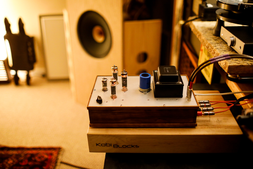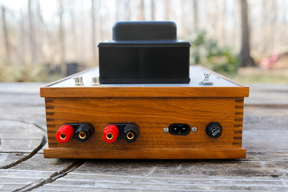 Gillespie Magnavox EL84 The EL84 is one of the very best sounding tube types ever made. Providing 3 or so watts in single ended and 12 in push pull, the EL84 is an easy tube to love. This small and thin cigar of a vacuum tube has a punchy vibrancy that dials the in-the-room presence factor way up, and provides a warm but crisply driven sound profile. The EL84 is a real crowd pleaser, and this mighty little tube is an excellent place to start any tube audio journey. Here we have a beautifully realized single ended EL84 amplifier built by an anonymous hobbyist using the Dave Gillespie Magnavox circuit with some updates to the power supply. This amp features the wonderful 1960’s Sony Tamradio/Tamura iron that I love, placed on a simple aluminum top plate and built into a very nicely crafted wooden base with dovetail joints and a heavy gauge wire under plate. An onboard chicken head volume control makes it a one-stop solution without the need for a preamplifier. Perfection! Driven by the 12AX7 and rectified with a 6CA4, the Gillespie Magnavox EL84 circuit is very articulate and forward sounding. Of the half dozen or so single ended EL84 amps I’ve owned to date, this one has the most forwardly driven, toe-tapping sound. A simple circuit with a big bold sound, this little amp sounds like it ate it’s Wheaties and is ready to run! Paired with an efficient wide band driver like the Visaton B200 or the Zenith 49CZ852, this small amp sings. A seemingly high gain amp, this one has no hum or noise of any kind at idle and portrays a fairly aggressive sound profile. In practice, I have never really gotten beyond 9:00 on the dial with this amplifier, and even at quite low volume the image and in the room feeling is strong and vibrant. EL84 tubes come in a variety of vintages and flavors, and in this amplifier 1960’s Siemens and Telefunken power tubes have been my primary application. Driven by a smooth plate Telefunken 12AX7, the vintage German sound is full and robust. Single ended amplifiers offer such an amazing sound, and EL-84 is one of my all time favorites. It pairs well with lots of speakers and is always a pleasing sound. This special little amplifier is quite a performer, and definitely checks all of the boxes on what I think is best practice for a new amplifier; high quality vintage parts used in a modern circuit. The obvious attention to detail on this one brings it to another level altogether. There are a lot of SE EL-84 amps out there, but very few as nice as this one. Highly recommended. |