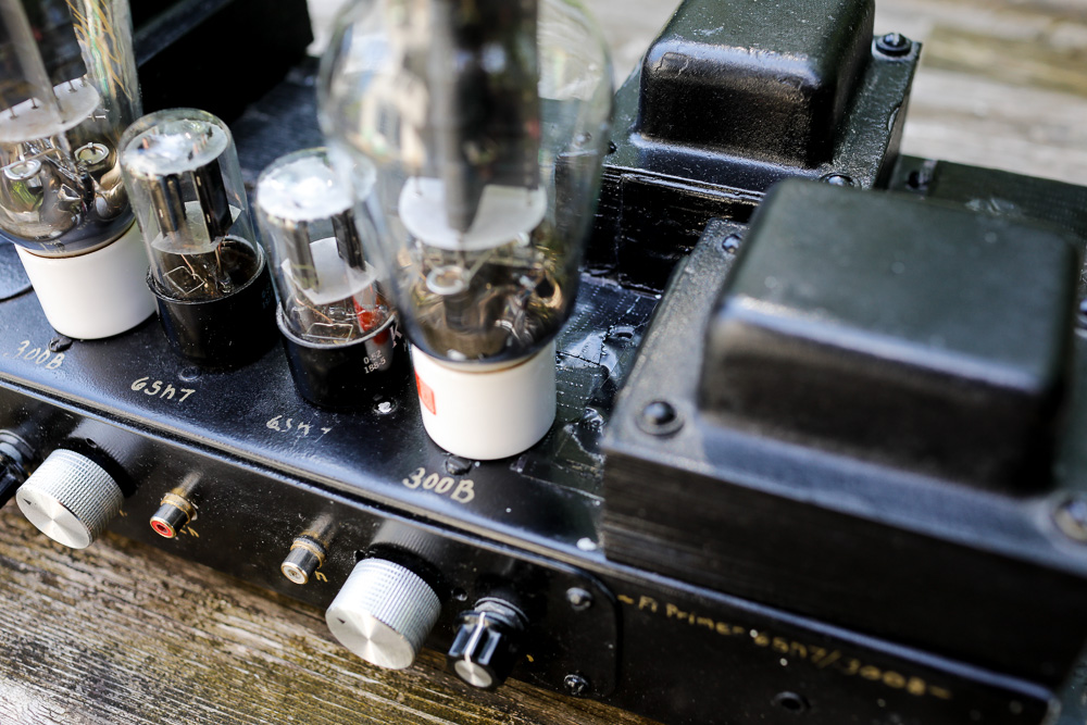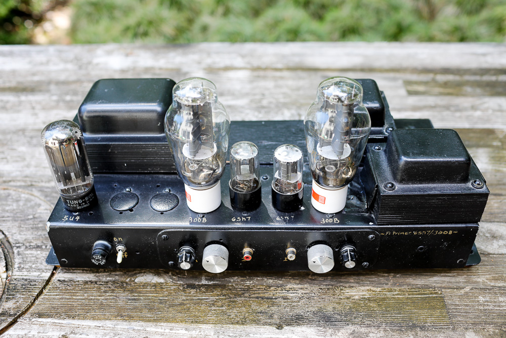 One thing you’ll see Google imaging John’s amps are some fairly high end 300B tubes in place. Emission Labs, KR, VVT. People spent $1000 or more on output tubes for these amps. I can see why, this amp deserves it. Here it is with my relatively modest Russian Gold Lion 300B, but I must admit that the Takatsuki are calling my name… |