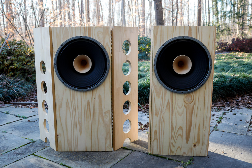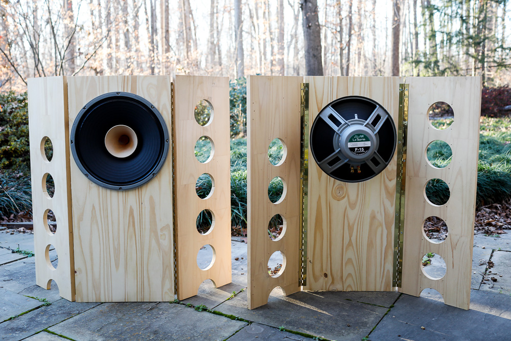 Here are the F-15 mounted in my simple open baffle design. In this case, the drivers arrived at the height of the COVID19 pandemic, and I used scrap wood left over from an old line array project that I found in my storage shed to construct the panels. The side wings are two panels from an old line array project, and although I wasn't sure what to expect I quite like the look. These drivers make bass fairly effortlessly in this setup and don't need solid support from the wings, so it works well. At any rate, this is an easy, cheap and stress free way to get supreme sound and I could be happy with this setup for the long run. |