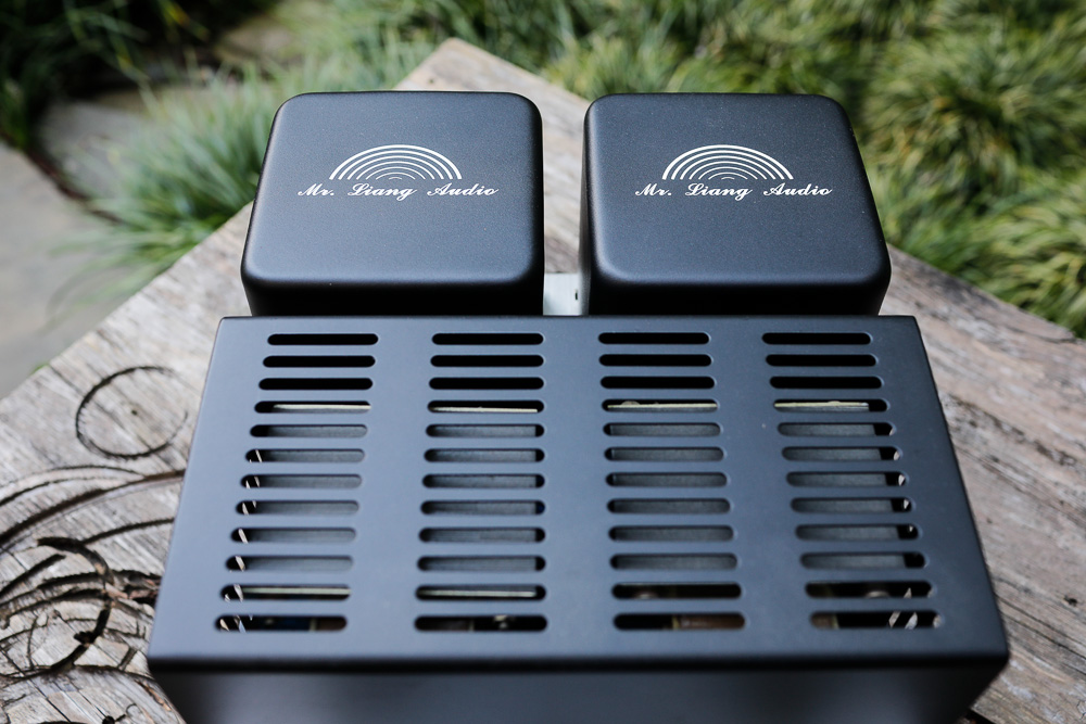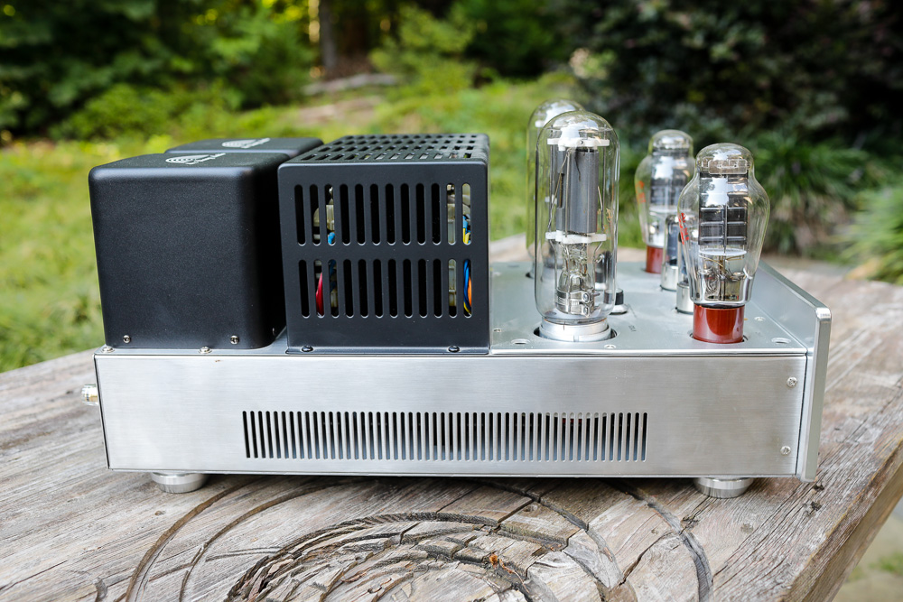 Mr. Liang is a great big bear of an amplifier. It has very classic tube amp lines, just exaggerated in size. These are some big tubes and big transformers. The amp itself weighs around 80 pounds, most of that distributed in the rear 35% or so of course, making it awkward and dangerous to move around by oneself. I had to have my 16 year old help move this one outside for the photos. |