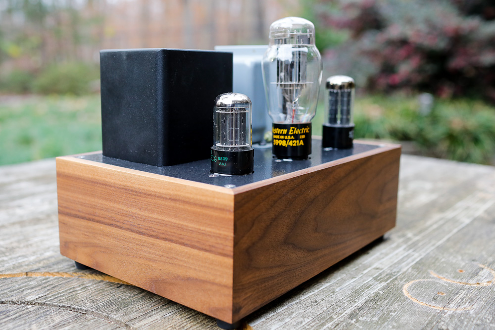 Oliver Sayes Western Electric 421a Here is a sweet and compact little single ended amplifier by one of my favorite builders, Oliver Sayes. I’ve owned a number of Oliver’s creations now and am always impressed. This one is based around the double triode 421a tube with a 5691 (a higher spec industrial 6SL7) driver and a 5Y3 rectifier. This amplifier is a real performer, and has a nice open sound that has everything in order; bass drive, a sweet golden midrange and highs that sparkle and shimmer just as anyone could want. With 3 or so watts per channel it does still require somewhat compliant speakers, but set up with the proper load this amp has a sound that puts a smile on your face and has a very definite triode profile. Dating to 1948, the 421a tube is a double triode, meaning it is two triodes in one glass envelope. So, for a stereo amplifier, you only need one tube. What a revelation! Designed by Western Electric (although evidence points more to Tung Sol manufacture), and intended for use in series as a voltage regulator, this tube was “rediscovered” in the 1990s as a hifi power tube, and what a tube it is! This bottle had some chutzpah! This is a very good sounding triode, with a sound profile that I would classify as slightly dry but nicely detailed and with excellent imaging. More a 2A3 profile than a 45. Driven by the 6SL7, and tube rectified with the 5Y3, the tube rolling possibilities are pretty wide here. 6SL7 has a lot of flavors, and the 5Y3 can be subbed easily enough with a type 80, and that opens up a variety of tubes to select from. So this amplifier is not limited and can be tweaked by the user to have a harder or softer sound as desired. The 421a is also a 5998 and both sound very good to me in this amplifier. In fact I am hard pressed to find a difference in the sound between the Western Electric branded 421a and a Tung Sol/Chatham 5998. This is a tube that was never meant for audio, much less a high end amplifier like this. I wonder what the Western Electric techs from the 50’s would think of this creation? If they heard it they would likely be blown away by the fidelity. This is an amplifier that delivers a big sound in a small package and has been a real treat to experience. Another flavor of triode, this sounds similar to some of the others but still has its own profile, and is a very good sounding amplifier. Both Oliver and the 421a are sure to please. |