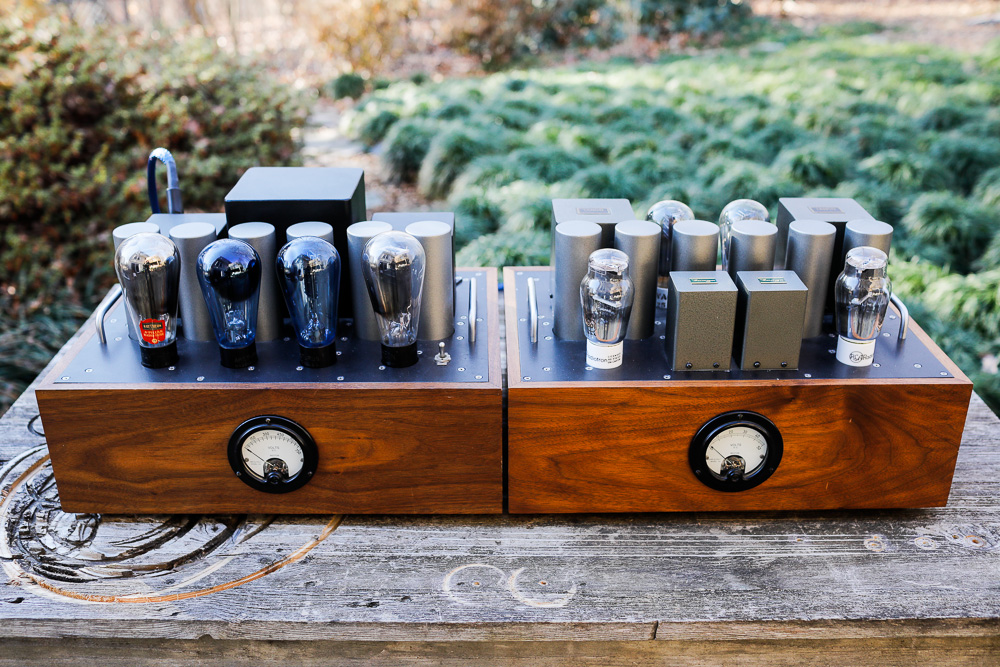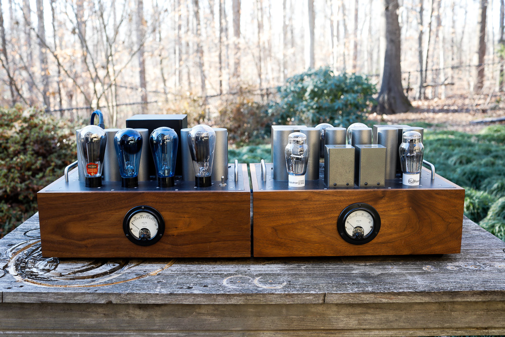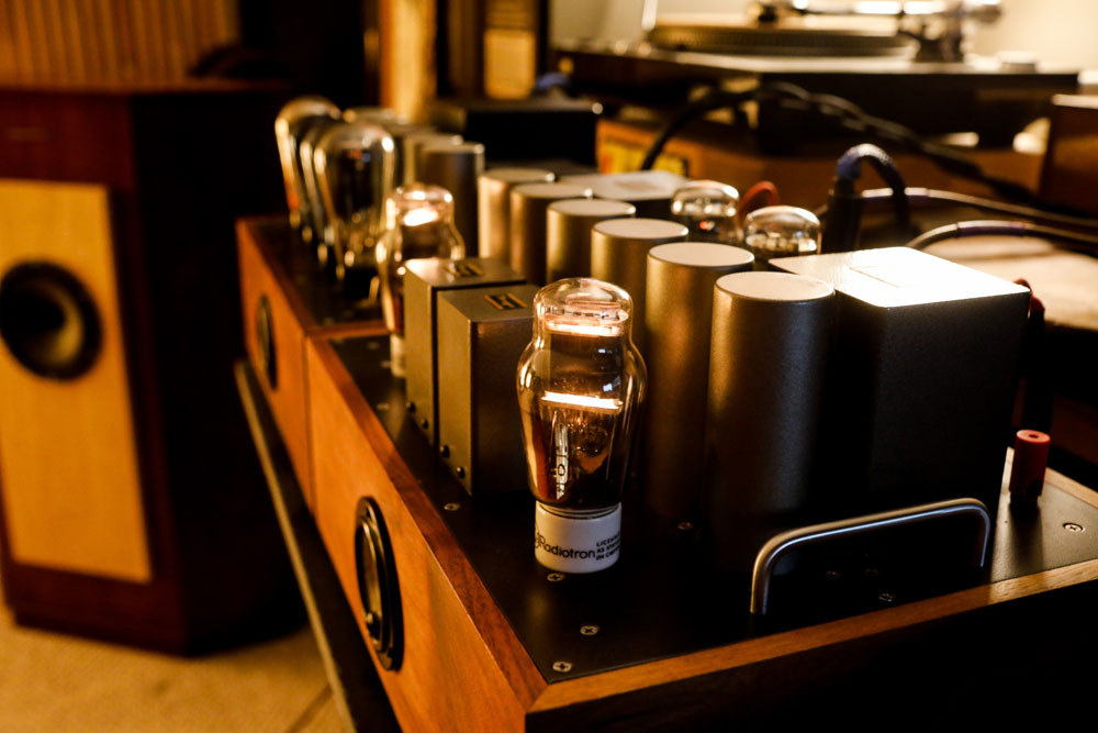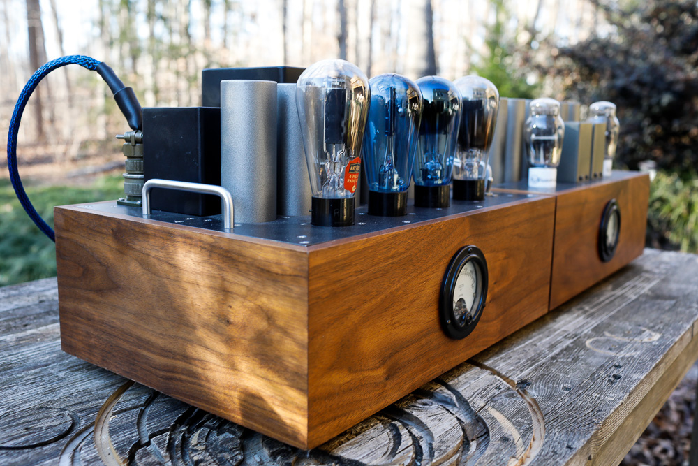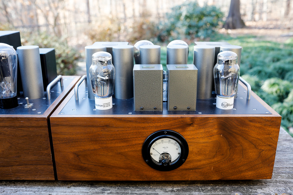 Both chassis feature Weston meters to monitor tube performance. Oliver likes to use pretty wood in his builds, and here is a clear example. Lovely honey tones and deeply pronounced grain. I love wood. I remember a quote from Eric Clapton about how in the future world “made from wood” will be exotic. Here is the hifi definition of exotic. |