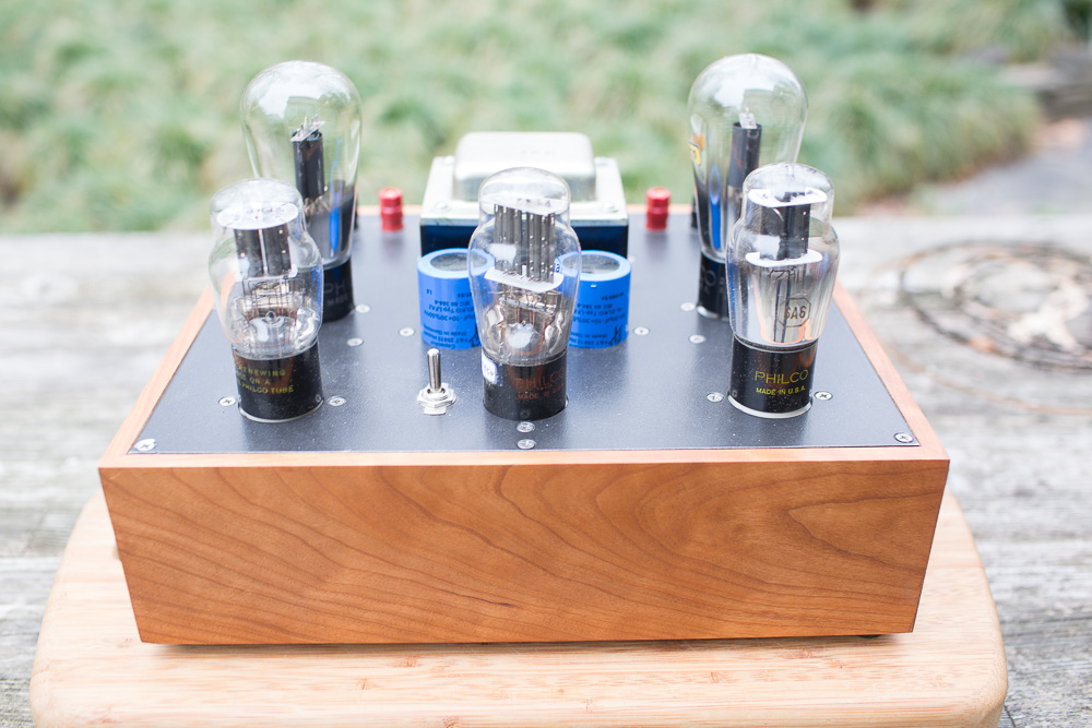 Oliver Sayes Single Ended Type 42 Amplifier Now here is an unusual little single ended jewel! This is a Type 42 amplifier built by Oliver Sayes. Oliver often pushes the envelope a bit by working with some unusual tubes, his amazing Type 46 amplifier that I owned previously being a good example. Here we have a great little amp using a power tube that just isn’t really ever seen in the hifi world, and that fell out of favor pretty much everywhere just before World War 2. Resurrected here, its proven to be quite a sleeper. HiFi tube builders take note, the 42 is a tube that you want to start experimenting with! The Type 42 is one of the very early Pentodes, dating back to 1932, and was used in quite a few early radios in the mid 1930’s through the early 1940s. Old enough to have been made in the S or Globe shape, the 42 evolved into the 6F6, and is sort of a predecessor to the 6V6. It turns out that the 42 is a wonderfully clear sounding tube with a drive and warmth that sort of brings the Type 10 to mind, but with about 4 ½ watts per channel its a bit more speaker friendly than many of the true Triodes. Driven here by the 6A6, the older brother to 6N7, this amplifier sounds extremely good on my Telefunken panels driving the little Coral Flat 5 drivers. Images are big and quite well defined, perceived spaces between players and instruments is right up there with the best I’ve heard, and voices float out into the room well defined, flesh and bone. It’s quite a treat! The 6A6 driver tube used here is worth some explanation. A very early tube, this one is also not used much by anyone and is available at quite reasonable prices, often still sealed in their boxes from the 1930s and 40s. About the same size as an ST 45, this is a large and robust tube. A close look at the internals reveal the highly desired round plates, there are smoked glass versions as well as clear glass, and pretty much all of the manufacturers of the day made this tube so many varieties are available. If these were 6SN7s, the round plates would fetch quite a premium price now, but no one is buying these beautiful 6A6 and NOS boxed tubes currently (2020) sell for about $10 each. This amplifier features a lot of good quality parts, including the Tamura/Tamradio iron I like so much. I really do think this is a big factor to the quality of sound in this amp and others, and I’m happy to see so many projects being built these days using these high quality 1960s Japanese transformers. Get them while they last! Bottom line, this is a great sounding amp, and with its power output it could be at home in a lot of systems that might be out of reach for the 45. And I don't feel like I’m missing anything. In fact, the pace and dynamics from the 42 might even be better than the 45, depending on the circuit. Aural memory is hard to pin down, but I would be willing to bet that this little gem would compare very favorably with the big guns like the AD1 or the PX25. It wouldn't be a knockout, but it would be a hell of a contest. I hope to see more 42 projects out there in the future. Not only is it a bargain, but I think this is a tube that lots of people will really enjoy. |