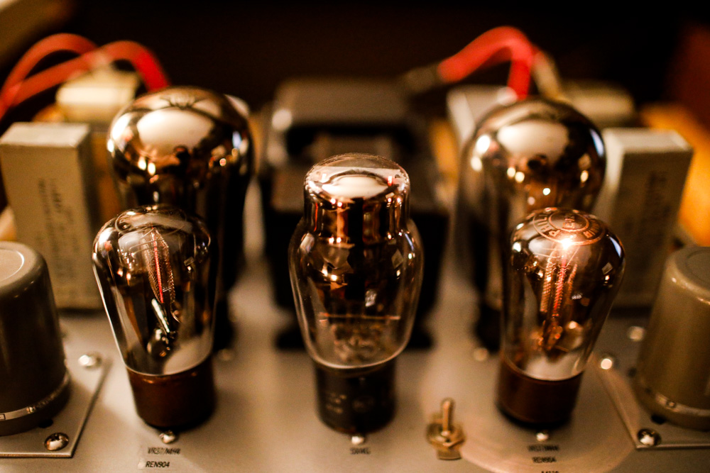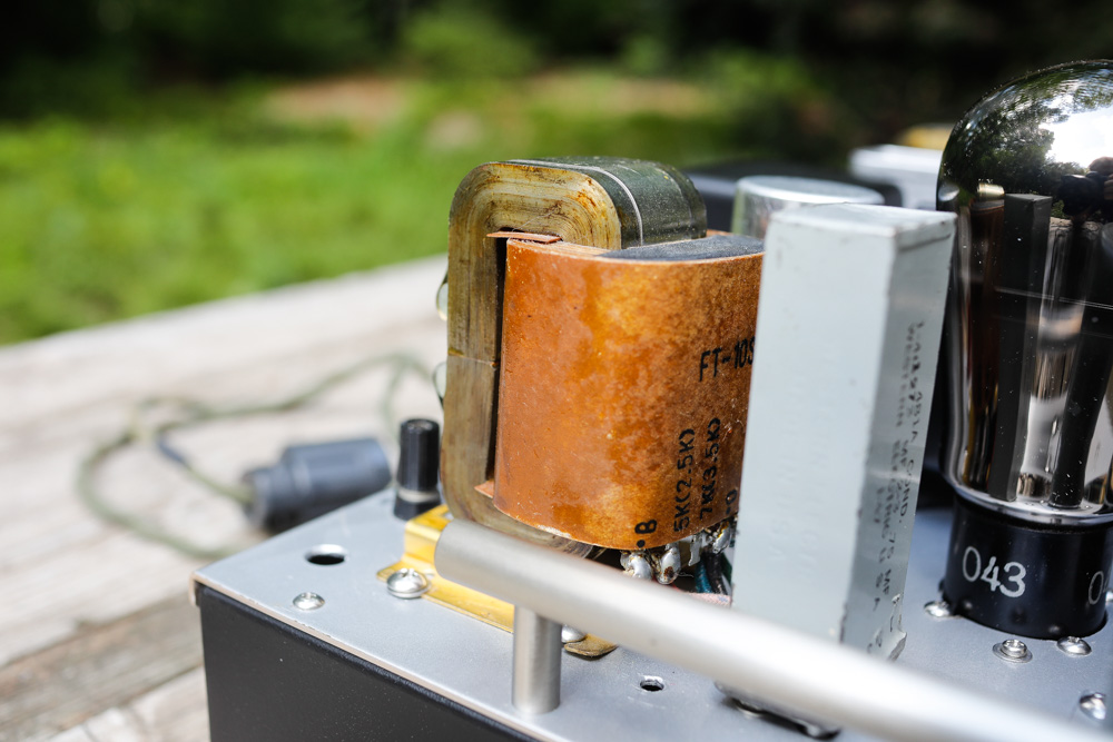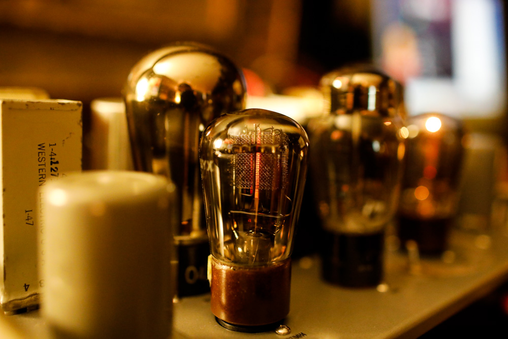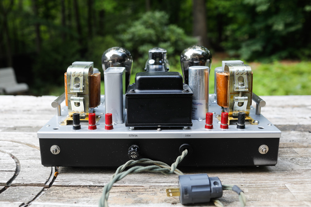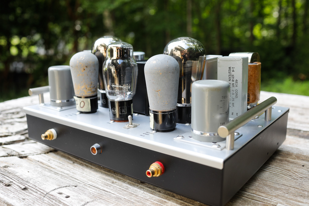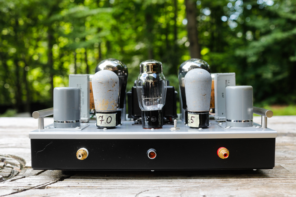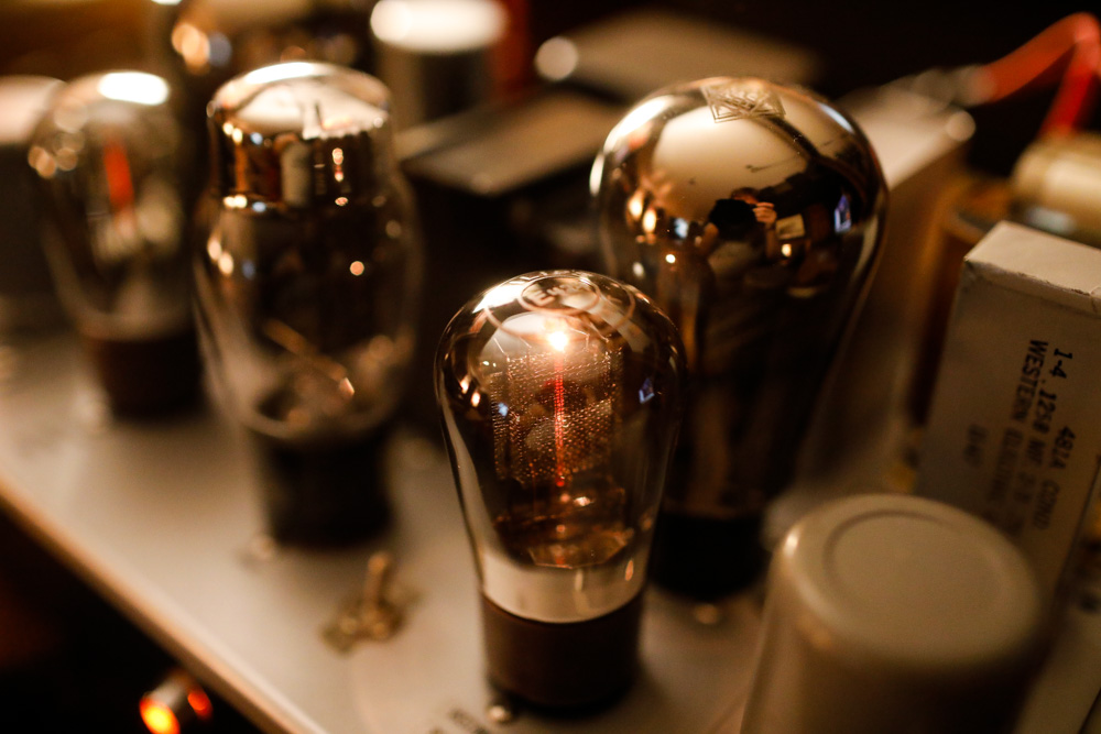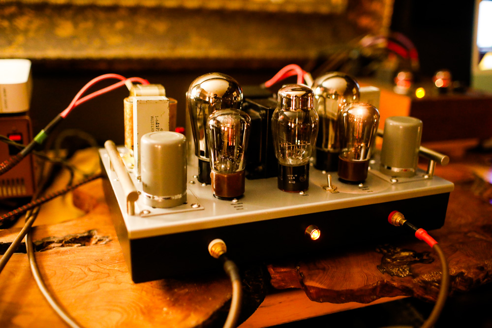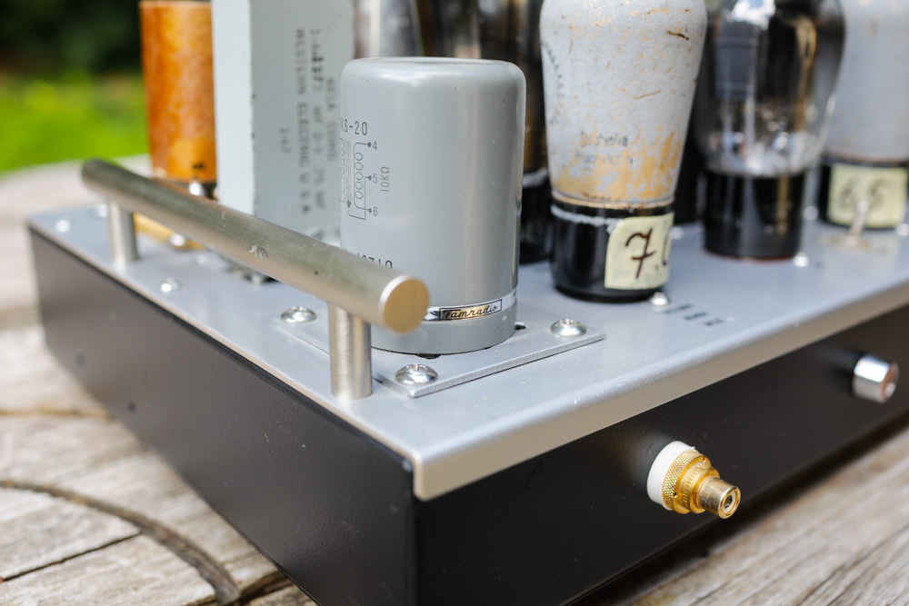 This amp uses a nice variety of input tubes. Here are: 1920’s mesh plate Philips E424, Valvo A4110 / REN904, and Mullard MH4. |