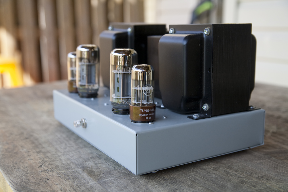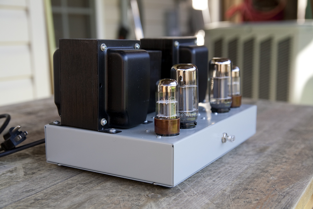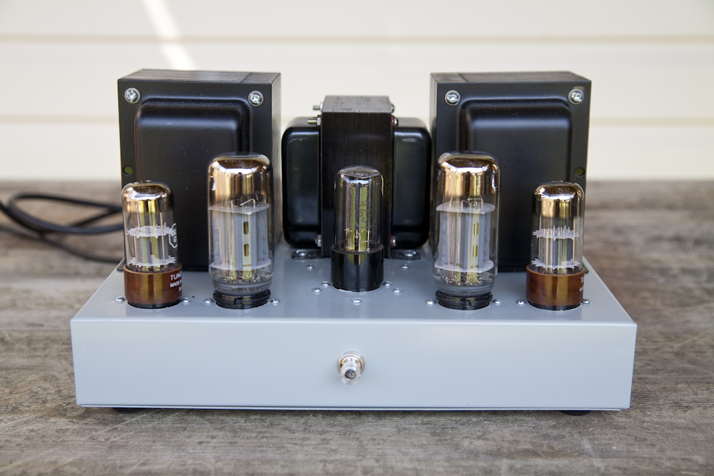 Single Ended 6L6 A gorgeous single ended amplifier running the wonderful 6L6 tube, and its many variants. This amp really turned me on to the possibilities of the 6L6 tube in single ended configuration and led me to buy a Decware Mini Torii. This wonderful "little" big amplifier was made by a very talented gentleman named Mark Still from the Boston area, and is one of the finest builds I have had the opportunity to own. Mark is a perfectionist and it shows! This amplifier features some of the largest iron I have ever seen on an amp, and weighs in close to 30 pounds, but in a small and compact footprint. It takes quite a while to warm up, but once it does it has a very nice drive and pace, a good solid soundstage. With Tung Sol round plate 6SL7 drivers, it sounds particularly delicious. This amp ran in my living room system alongside the Lance Cochrane EL-84, and held its own nicely. A thicker and meatier sound than the push pull EL-84. I used this amp with a variety of 6L6 tubes, including the terrific Valve Art 350B and a pair of 1952 Tung Sol 6AR6 tubes on adapters. The 6AR6 are rumored to be Western Electric 350A tubes without anode caps. The 6BG6 tube was a very good performer here as well. |