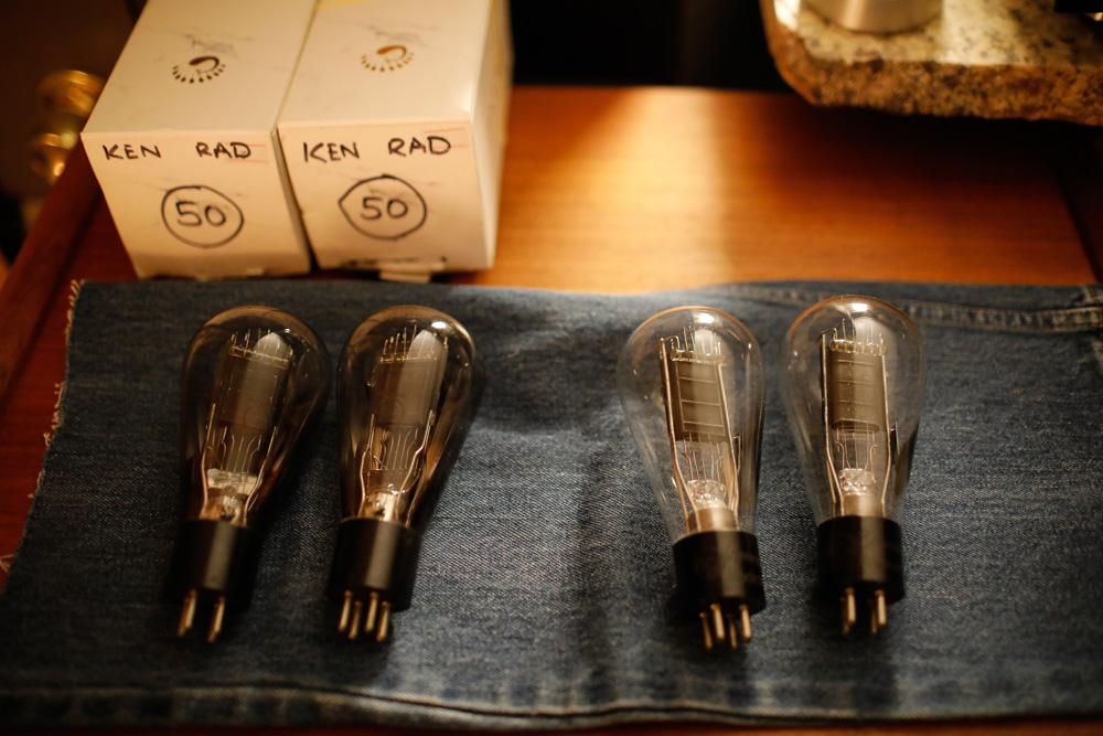 I have two pairs of 50 globes on hand, Ken-Rad and RCA/Cunningham. I’ve owned the Ken-Rad pair for years and their time has finally come. They have a darker glass, but seem to bias and sound the same as the RCA. |