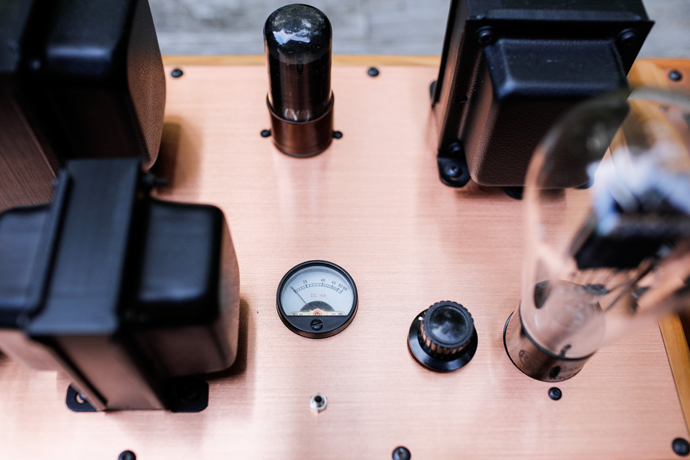 The built in panel meters allow you to quickly bias the output tubes, and it gives some indication of tube life. The dial is a hum pot, not a volume control unfortunately, but I’ve never need to use it. |