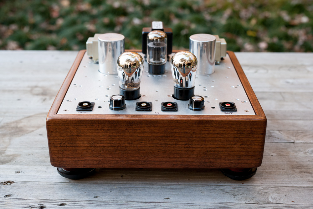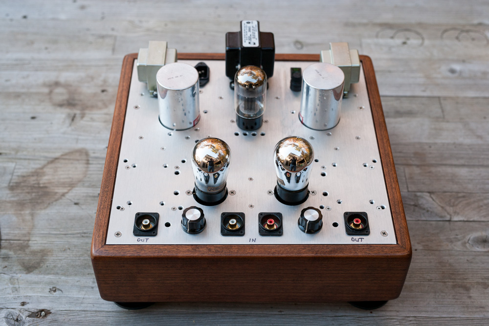 This may be a rougher looking top plate, but combined with the wooden case it has great karma and was clearly made with precison and care. Most of Radu's amps are super clean looking with pro-machined top plates, seperate power supplies, etc. and are drop dead gorgeous. One day a fancy 2 chassis version of this preamp is in my future. |